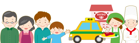 あけぼの代行がお客様の代わりに、お買いものやテイクアウト商品をご自宅にお届けするサービスです。